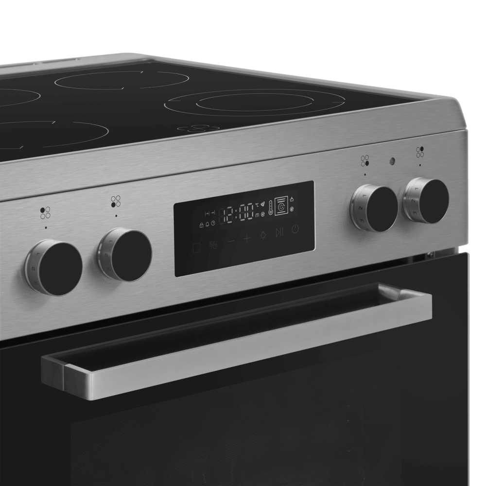 В духовом шкафу объёмом 59 л предусмотрено 15 функций и продуманная конвекция для равномерной пропекания. Съёмное тройное стекло дверцы, рецепты на дверце и хромированные направляющие делают процесс приготовления ещё удобнее, а освещение камеры помогает контролировать результат в любой момент.