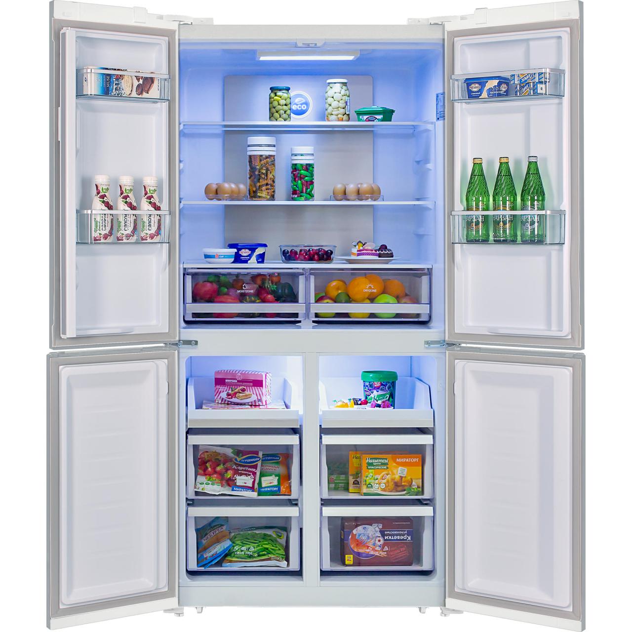 Стильный и вместительный четырехдверный холодильник HIBERG RFQ-555DX NFGW с автоматическим ледогенератором и зоной свежести – идеальный выбор для просторной кухни. Общий объем холодильника 618 литров. Цвет: белое мерцающее стекло.