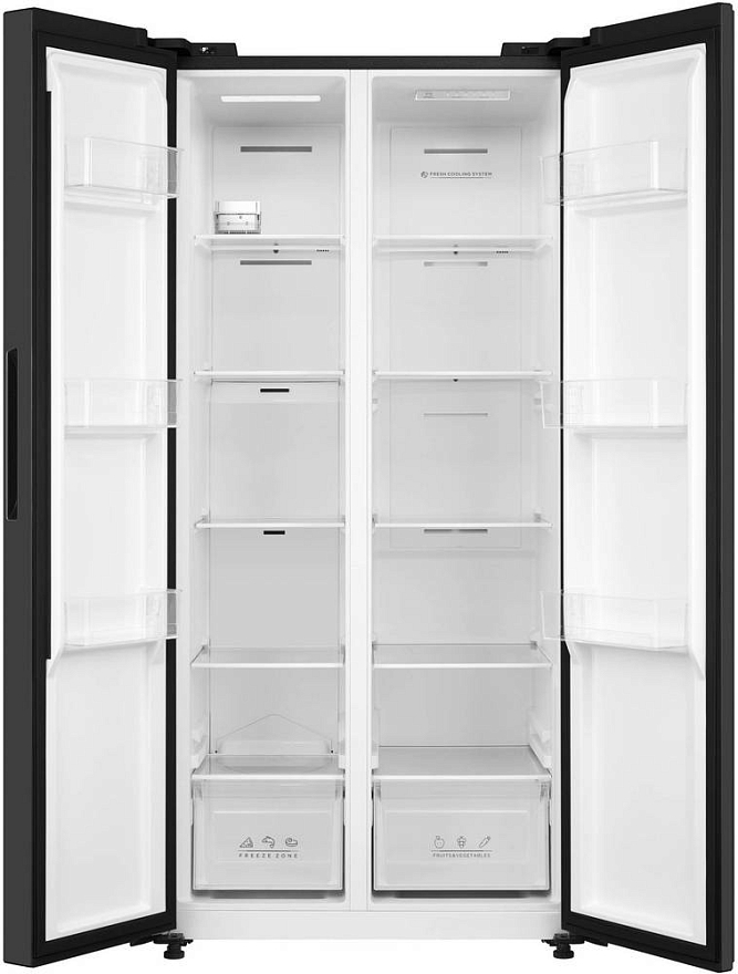 В холодильной камере и на двери располагаются полки, которые можно легко переставить по высоте, а также контейнер для овощей. Dynamic Air Cooling благодаря специальному вентилятору обеспечивает перемешивание воздуха и соответственно равномерное распределение температуры. Функция «Super Freeze» отлично подойдет для заморозки ягод, грибов и овощей, сохранит их питательные вещества и витамины. Мощность заморозки составляет до 10 кг в сутки. При необходимости охлаждения большого количества продуктов вам поможет опция Super Cool — она моментально установит необходимую температуру внутри холодильника. Инверторный высокоэффективный мотор экономит потребление электроэнергии, а также продлевает срок службы вашего устройства.