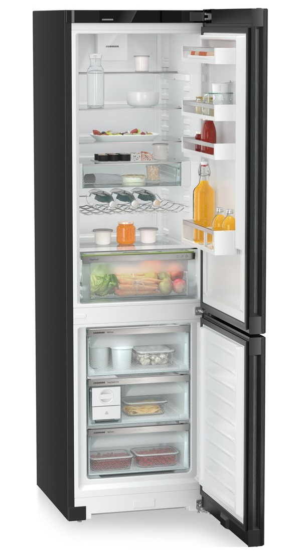 За свежесть продуктов отвечают фирменные технологии Liebherr. EasyFresh поддерживает повышенную влажность для неупакованных овощей и фруктов, продлевая их срок годности. В холодильной камере равномерное распределение холода обеспечивает PowerCooling с тихим вентилятором, а SuperCool быстро охлаждает свежие покупки и затем отключается автоматически.