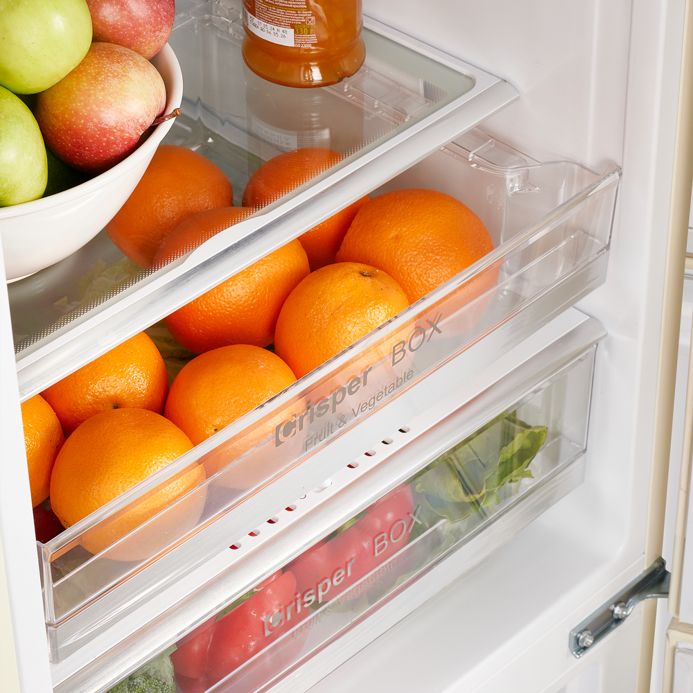 Продуманная организация пространства позволяет легко разместить недельные запасы. Внутри — полки, боковые секции и выдвижные ящики, а полезный объём 250 л обеспечивает комфортное хранение без компромиссов по порядку и доступу.