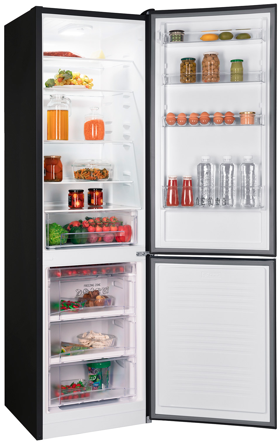 Общие данные: Размеры: высота (см): 203 ширина (см): 57 глубина (см): 63 Общий объем/ Полезный объем: Холодильника (л): 343/312 Холодильной камеры (л): 238/237 Морозильной камеры (л): 105/75 Тип управления: механический Класс энергопотребления: A+ Климатический класс: N-ST (от +16°С до +38°С) Количество компрессоров: 1 Годовое потребление энергии: 313 кВтч Цвет: черный матовый Холодильное отделение: 5 полок из закаленного стекла 4 полки на дверце Автоматическая (капельная) система отттаивания LED-подсветка Температура: 0°С...+8°С Большой выдвижной ящик для овощей Морозильное отделение: Система No Frost (Frost Free, Ноу Фрост) Сохранение температуры при отключении до -9 С: 10 ч Мощность замораживания: 3.5 кг/сутки Температура: не выше -18°С 3 ящика Лоток для ягод Дополнительная информация: Перенавешиваемые двери Ручки: интегрированные горизонтальные Испаритель: запененный Ламинированная внутренняя поверхность холодильника с антибактериальным покрытием Уровень шума: 41 дБ Хладагент: R600a Вес: 67.5 кг