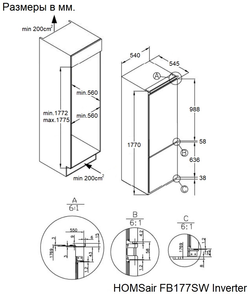 Холодильник встраиваемый HOMSair FB177SW Inverter RU