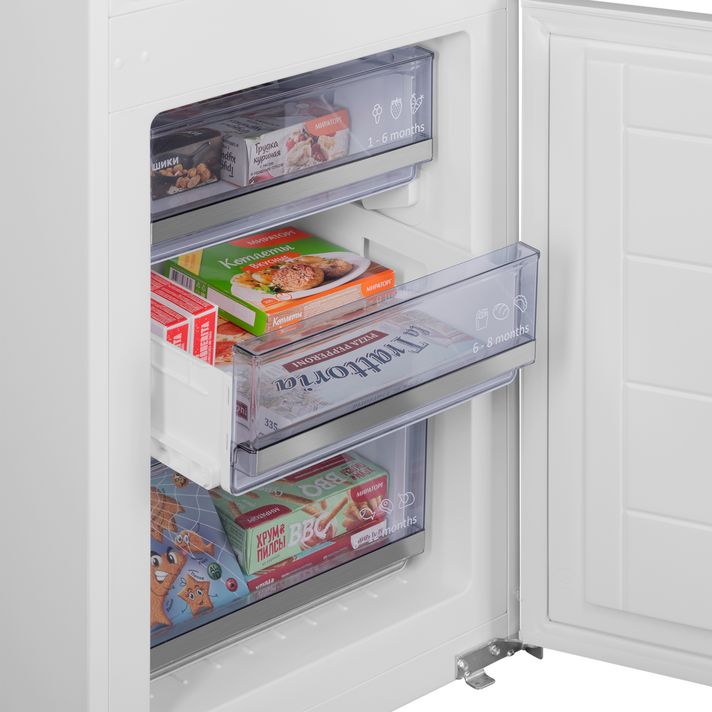 В основе надёжности — инверторный компрессор, который поддерживает стабильную температуру и бережно расходует ресурсы. Встраиваемый холодильник с инвертором MAUNFELD MBF177SWGR Inverter создан для тех, кто ценит продуманную эргономику и современный дизайн без компромиссов.