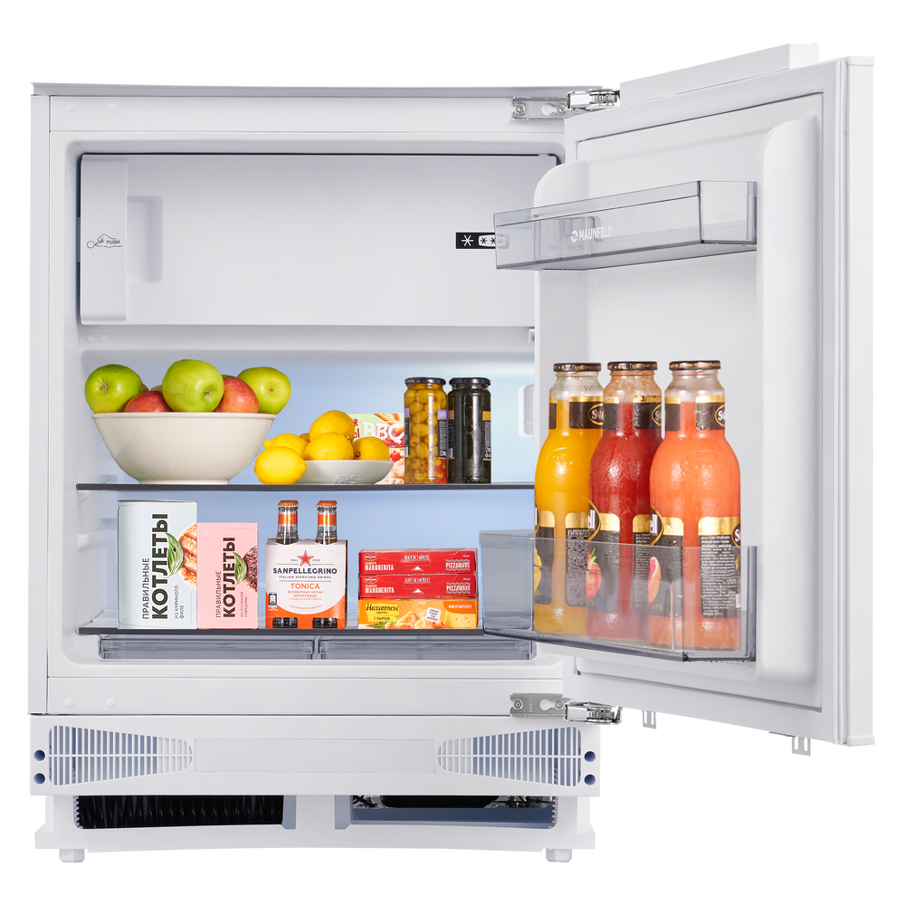 Холодильник встраиваемый MAUNFELD MBF88SWGR Inverter — удобное решение для небольших кухонь и студий: модель аккуратно интегрируется в гарнитур и не перегружает пространство. При компактных размерах она предлагает общий объём 115 л, достаточный для повседневных продуктов и заготовок.