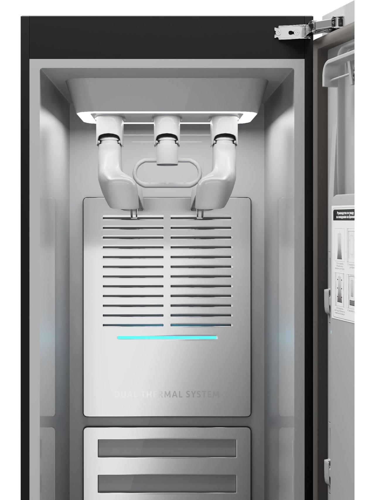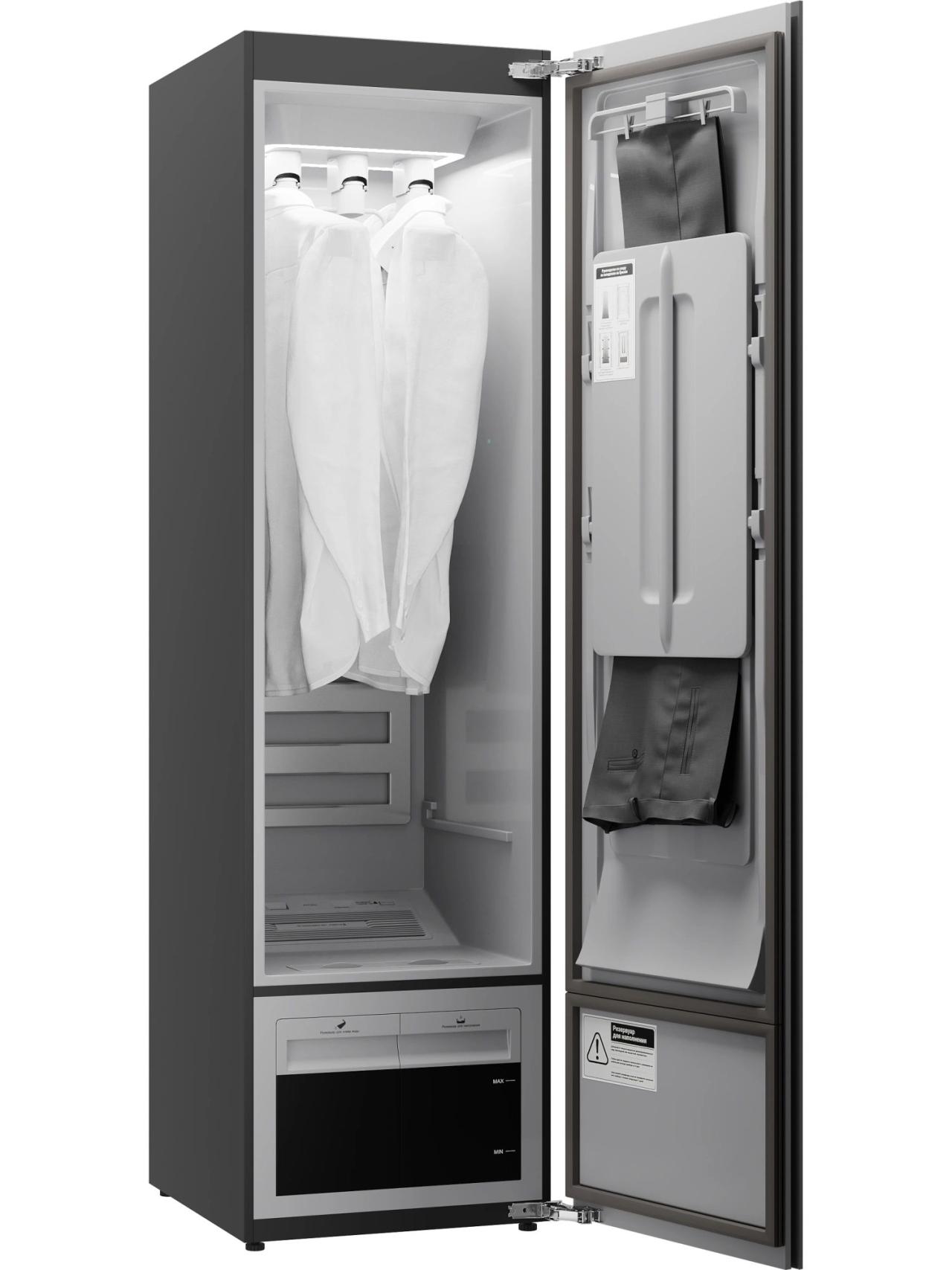 За чистоту и безопасность отвечает комплекс технологий: плазменная стерилизация вместе с паром работает на уровне волокон, снижая количество бактерий и аллергенов. При этом конденсационная сушка с тепловым насосом бережно удаляет влагу без пересушивания и деформации тканей — от сорочек до плотной верхней одежды.