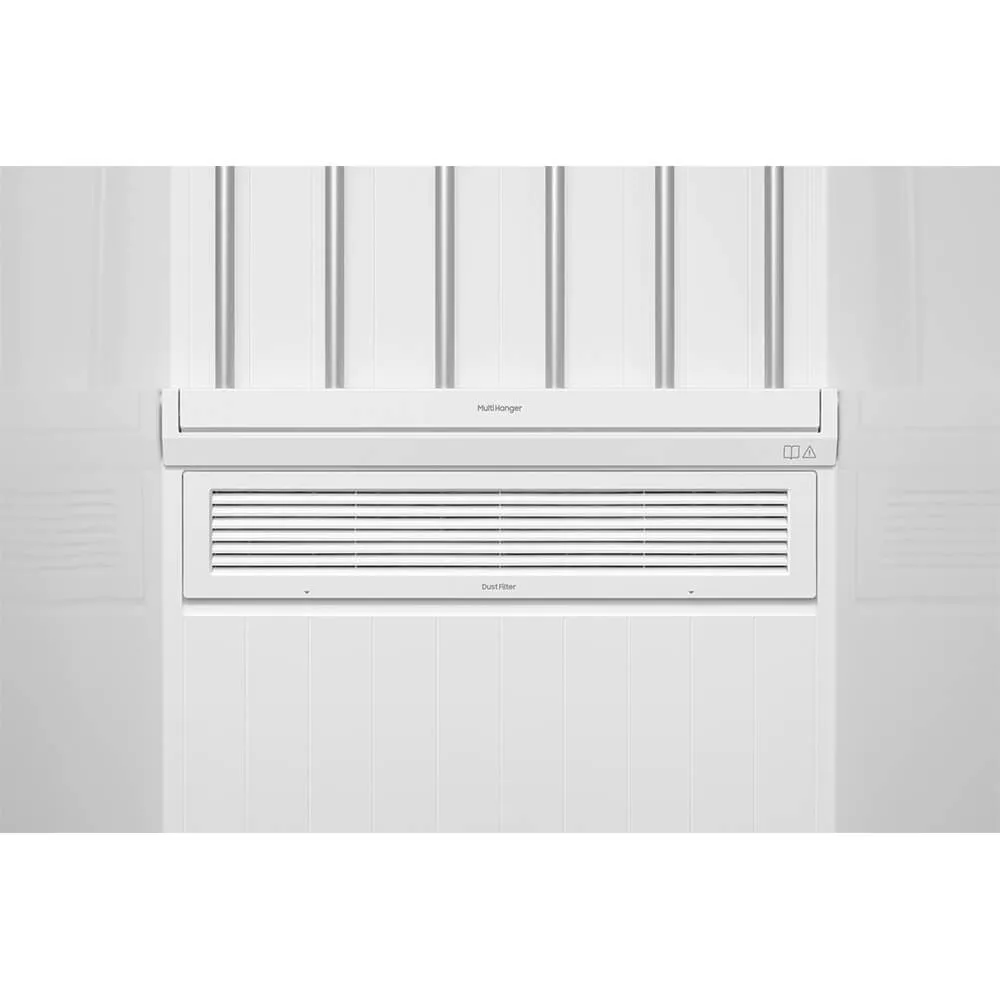 Особенности установки: Отдельностоящая вертикальная конструкция высотой почти 2 метра. Требует значительного места по высоте и наличия розетки. Дверца открывается вправо. Увеличенная ширина (59.5 см) по сравнению с другими моделями AirDresser обеспечивает больше внутреннего пространства и наличие зоны для длинной одежды.