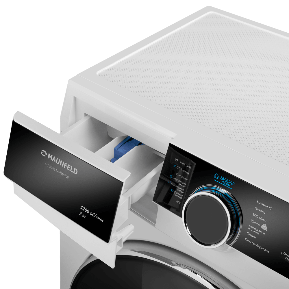 Стиральная машина с инвертором и паром MAUNFELD MFWM127STWH06 создана для тех, кто ценит тишину, экономичность и удобство. Интуитивное сенсорное управление помогает быстро запустить нужную программу, а «Мой режим» сохраняет ваши индивидуальные настройки — температуру, скорость отжима и дополнительные функции — чтобы включать любимый цикл одним движением.