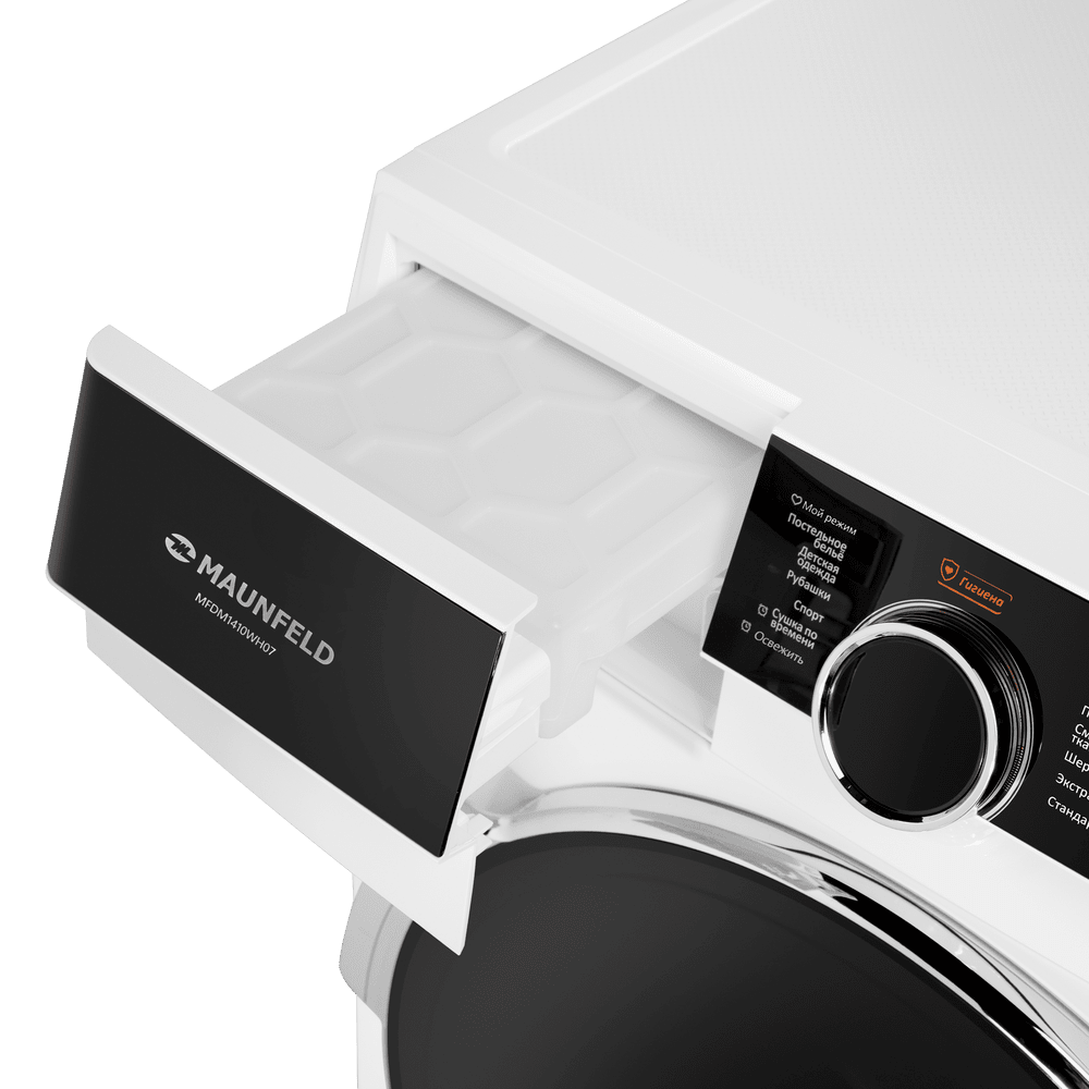 За комфорт и долговечность отвечает инверторный двигатель, снижающий шум до 66 дБ и износ узлов. Удобное сенсорное управление с информативным дисплеем облегчает настройку параметров — можно изменять температуру в диапазоне 20–70 °C и сохранять любимые настройки в «Моём режиме». Внутренняя подсветка помогает контролировать процесс, а режим «Без складок» сокращает время на глажку.