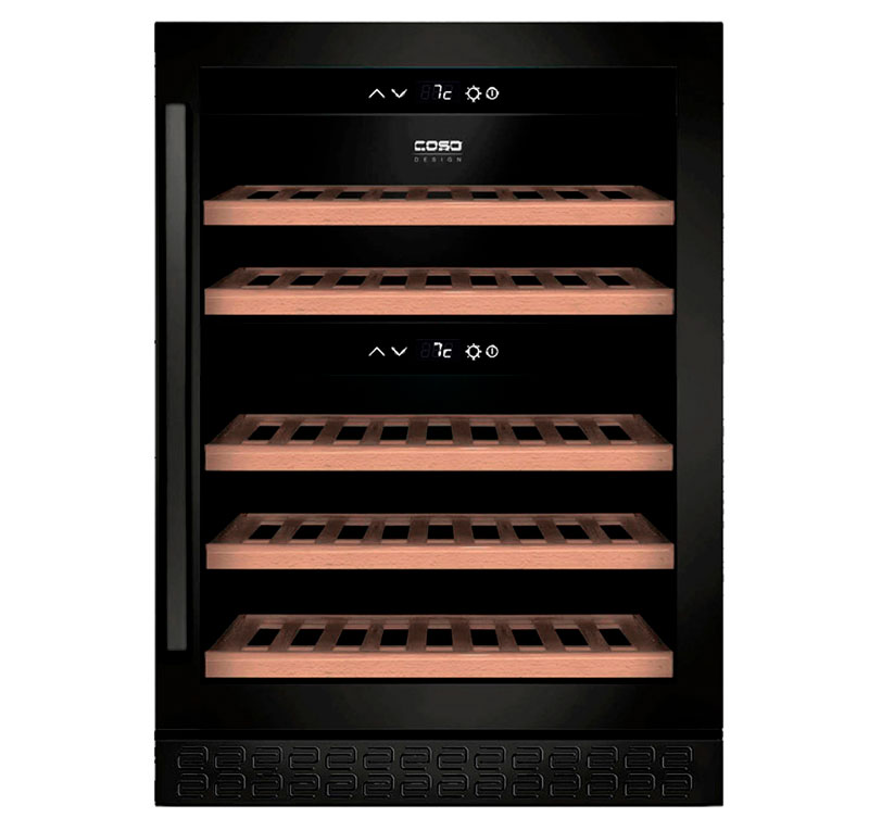 Двухзонный компрессорный винный холодильник CASO WineChef Pro 40 black, предназначенный для хранения вина в температурном диапазоне от 5 до 20°C. Верхняя зона предназначена для хранения белых и игристых вин (6-10°C), нижняя – для красных (10-20°C). Зоны работают автономно, каждая оборудована собственным контуром охлаждения и панелью управления. Компрессор CASO WineChef Pro 40 отличается низкой вибрацией и малым энергопотреблением (всего 142 кВтч в год). В случае, когда обе зоны - верхняя и нижняя - работают, температура верхней зоны должна быть ниже или равна температуре нижней зоны.