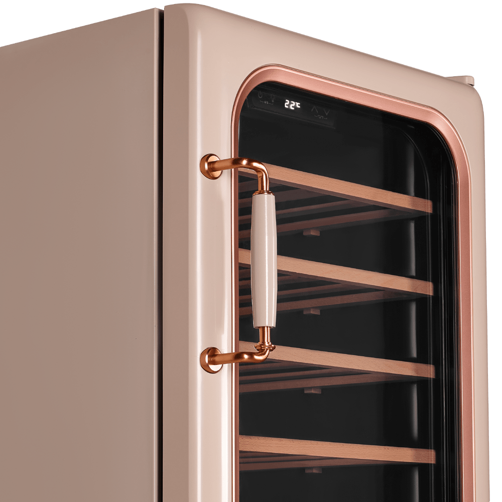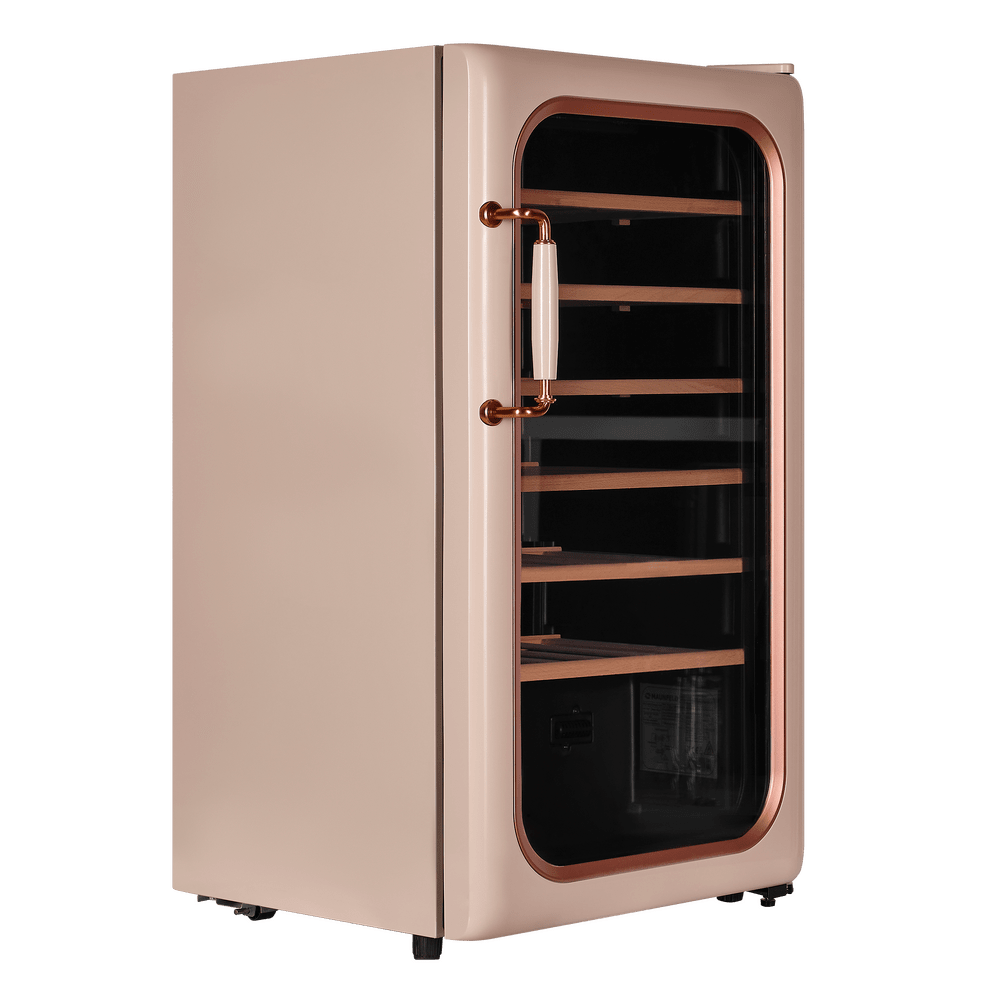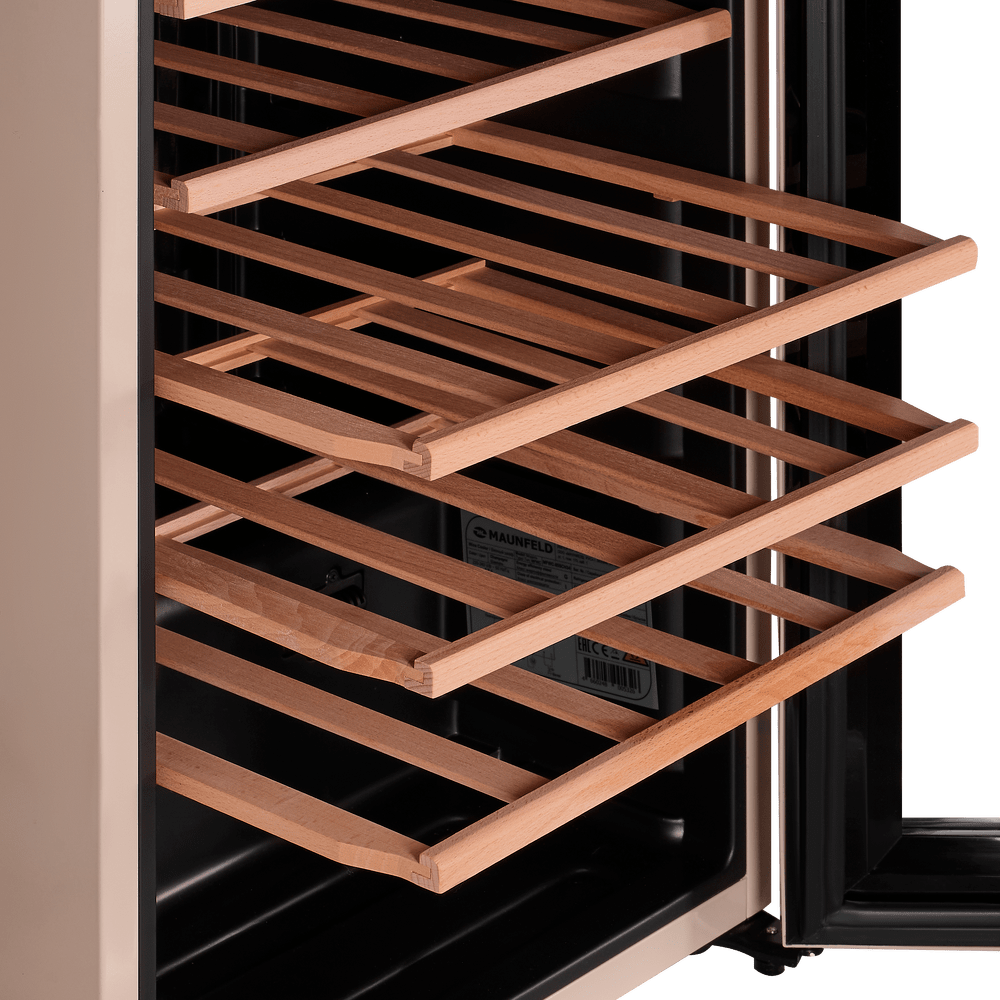 Модель оснащена сенсорной панелью управления с цифровым дисплеем, вентилятором для равномерного охлаждения и деревянными полками из бука, которые снижают вибрацию и создают комфортные условия для напитков.