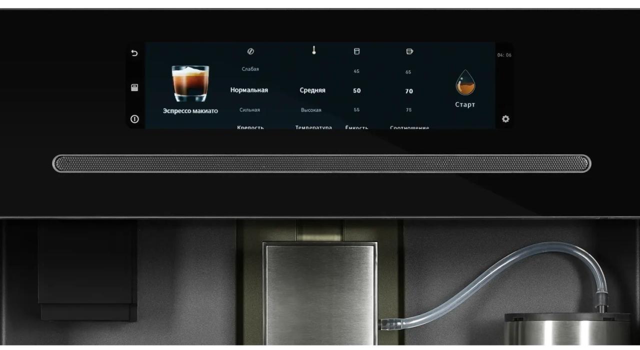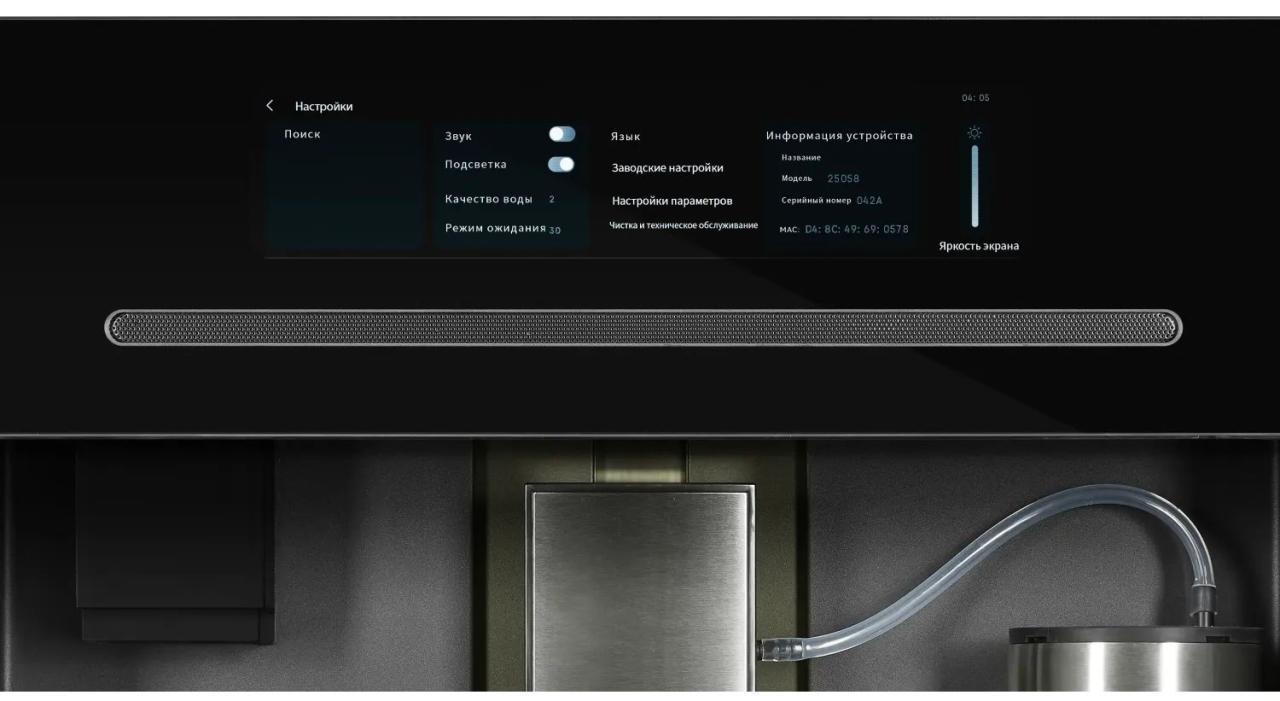 Ежедневная эксплуатация продумана до мелочей: контейнер на 500 г зерен, автоматическая самоочистка капучинатора и подключение к водопроводу снимают рутину и помогают сосредоточиться на главном — удовольствии от напитка.